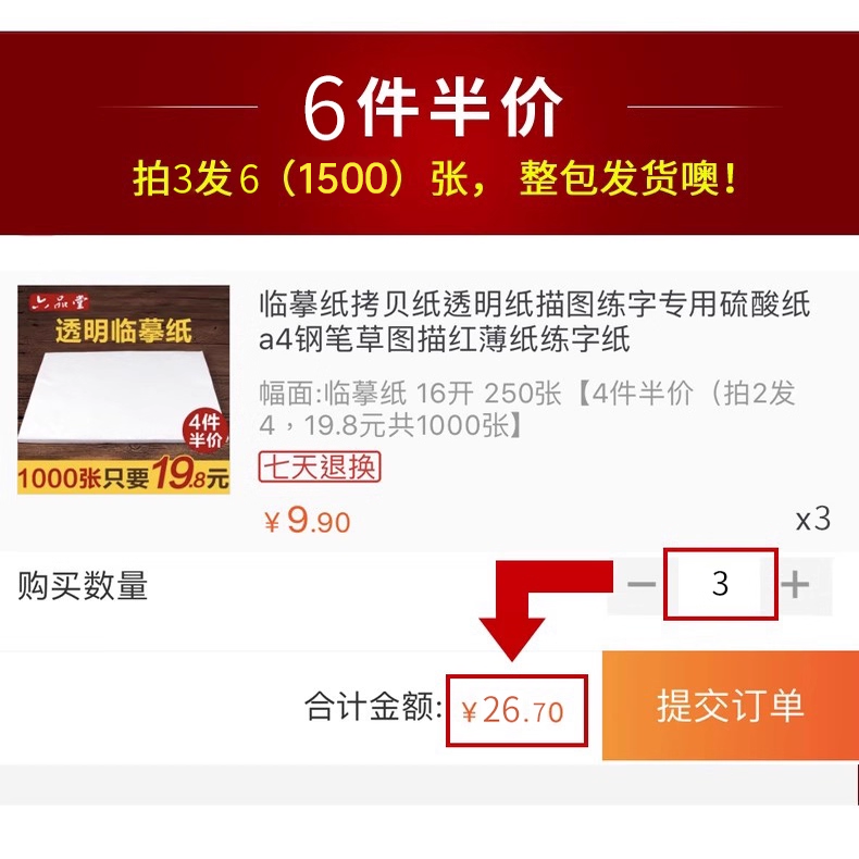 推荐理由:临摹纸250张 逢2件发一整袋500张 书签随机