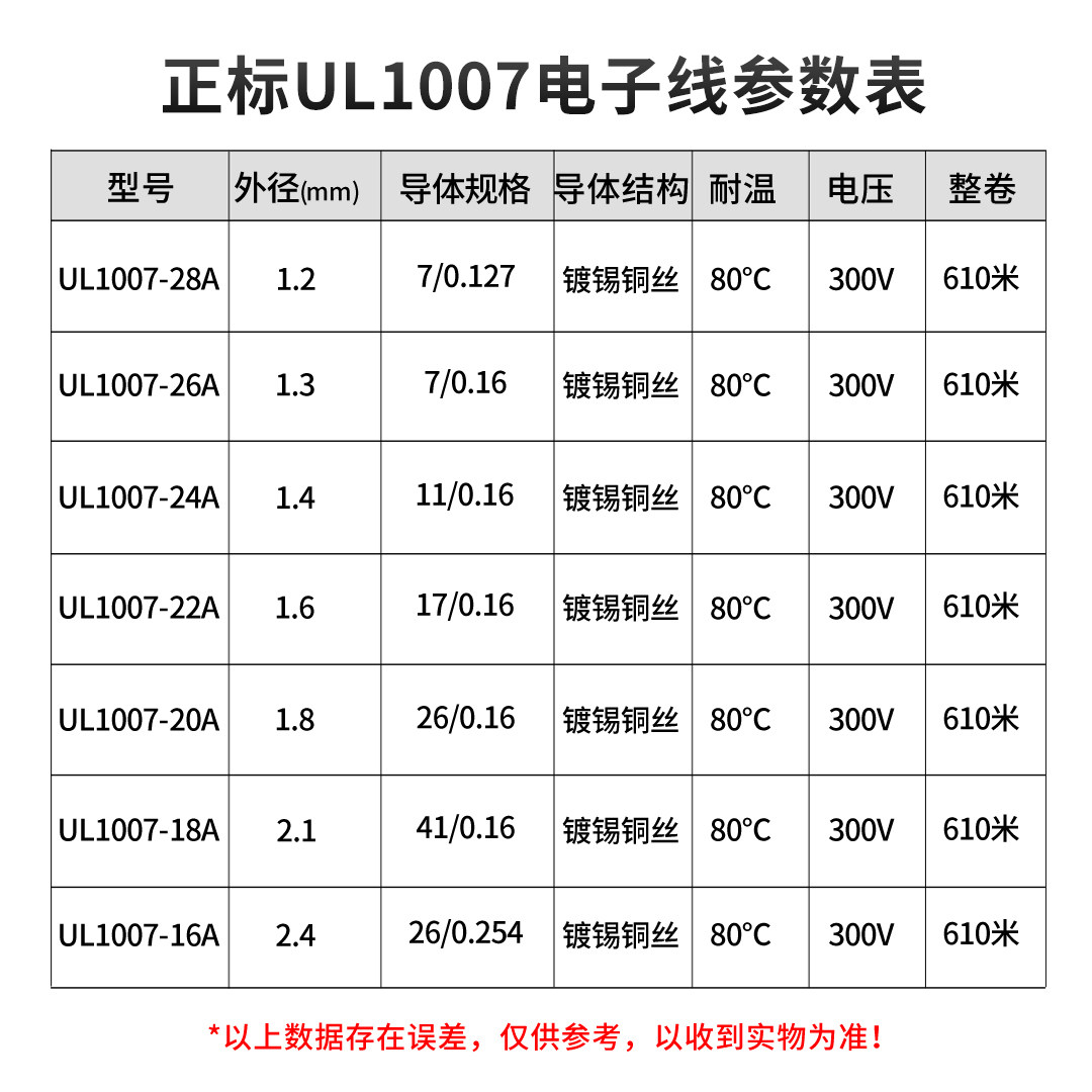 推荐理由:正标UL1007电子线软线镀锡铜28/26/24/22/20/18AWG端子线美标认证