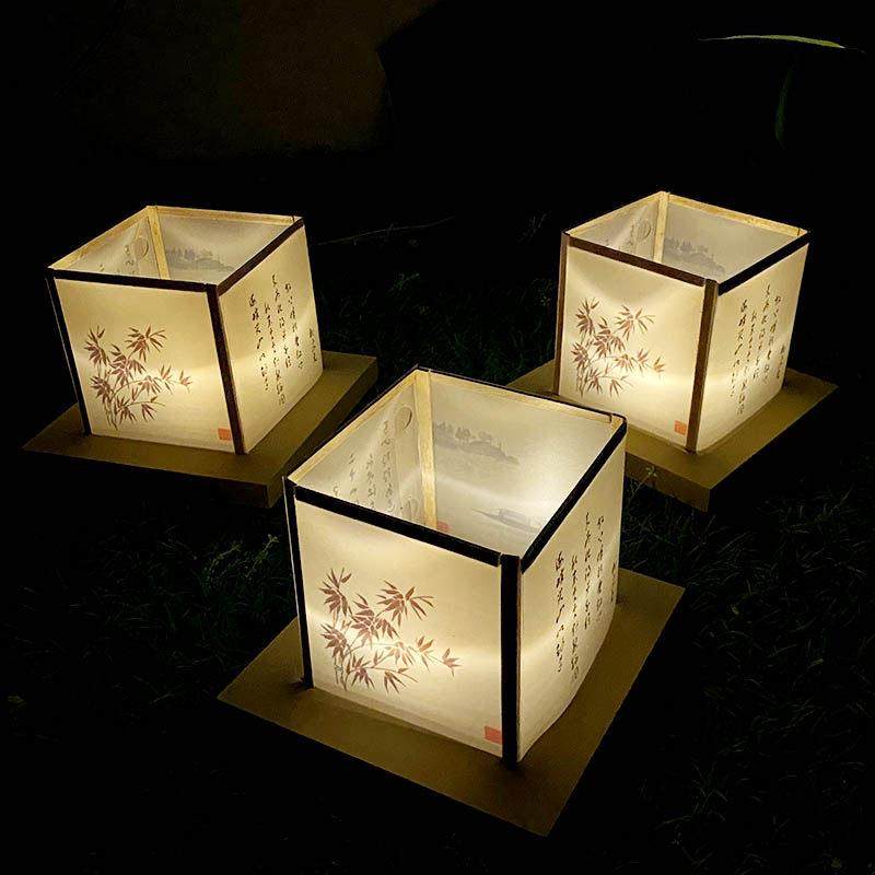 led方形河灯中秋节水灯diy图案节庆活动定制接电河灯船