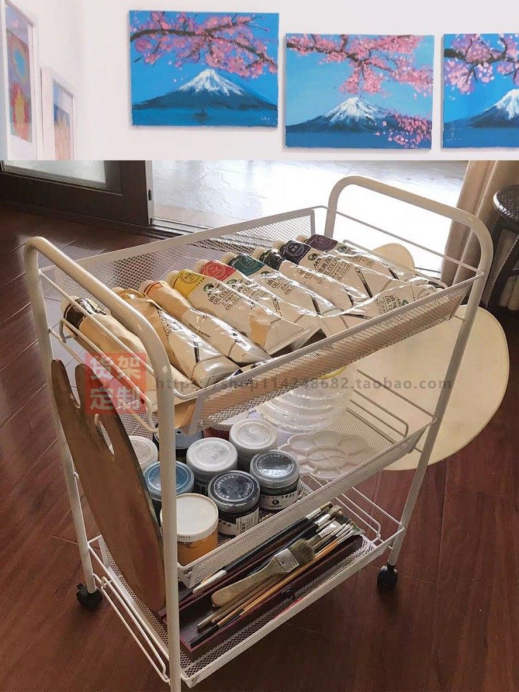推荐理由:可移动油画推车画室置物颜料收纳车多功能美术写生拉车画车工具车