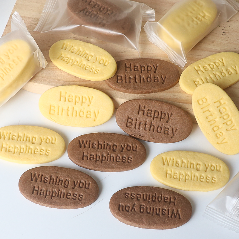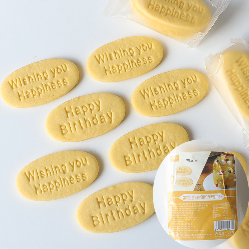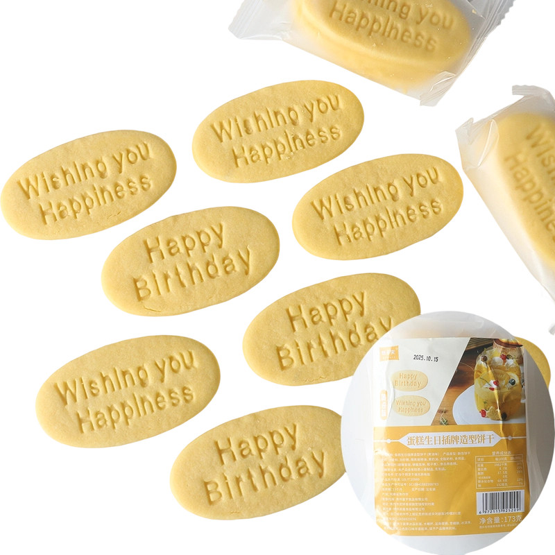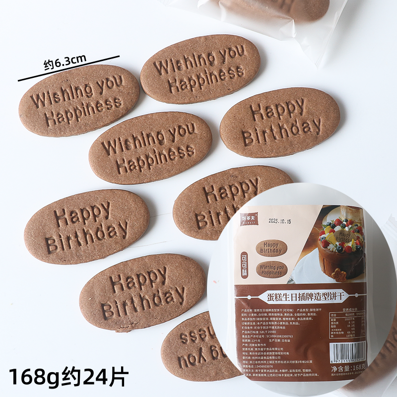 Happy Birthday椭圆形黄油味可可味饼干生日蛋糕装饰摆件甜品插件