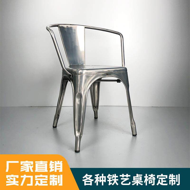 工业风扶手饭店餐椅铁艺椅快餐奶茶店单人椅户外做旧凳简约椅子