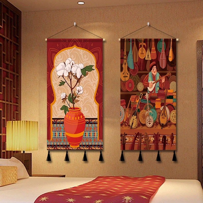 新疆特色布艺挂画民族风挂毯民宿餐厅饭店墙面美食装饰背景布挂布