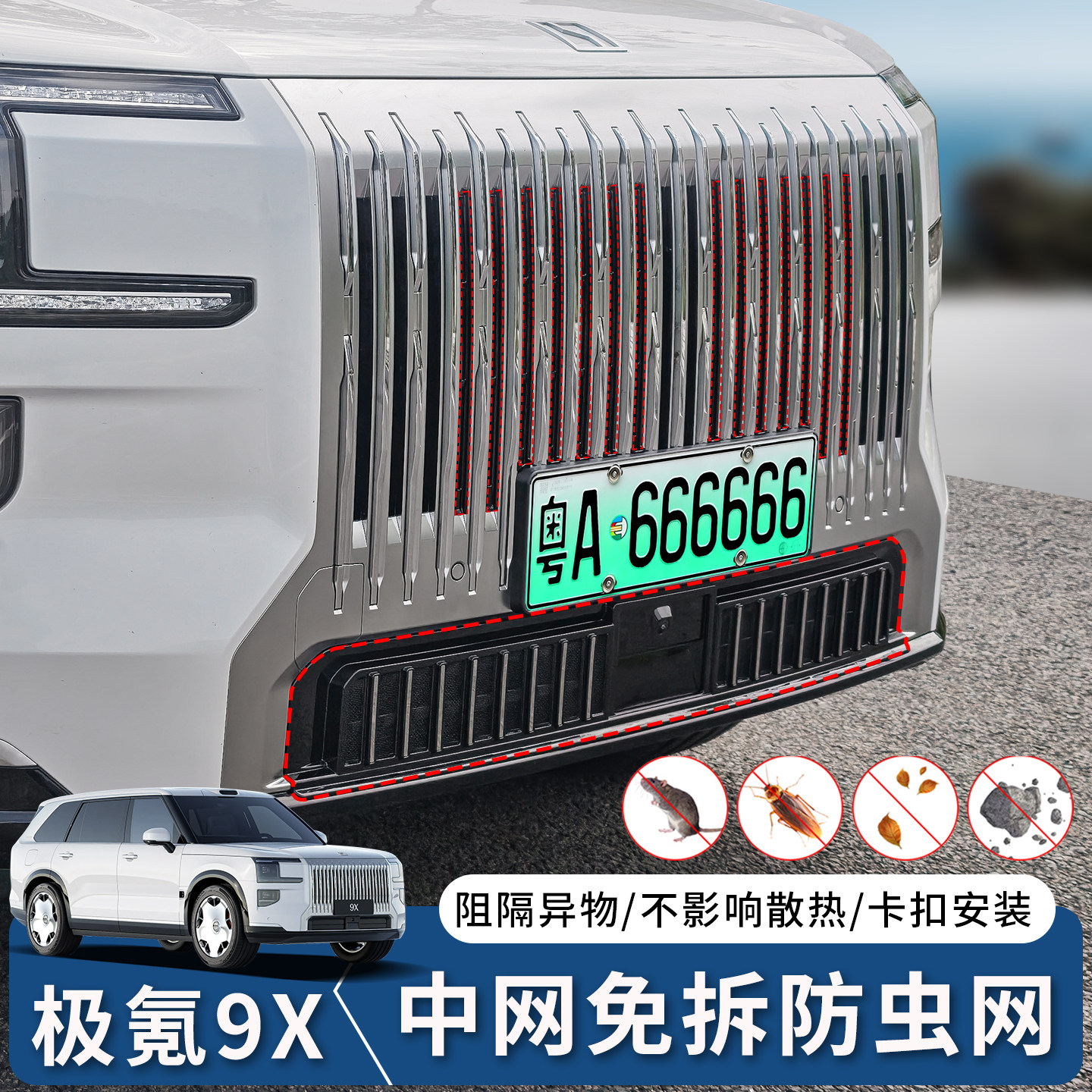 适用于极氪9X防虫网汽车水箱中网空调进气口保护罩改装件用品配件