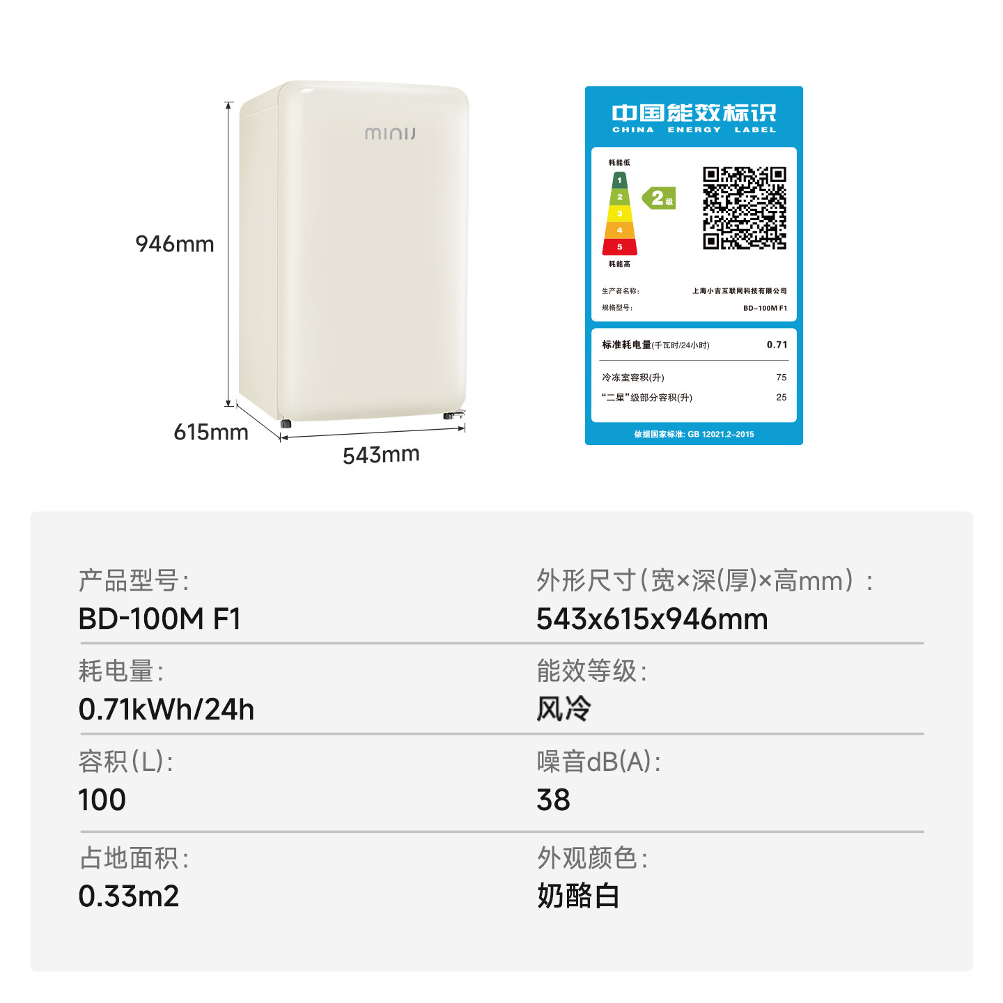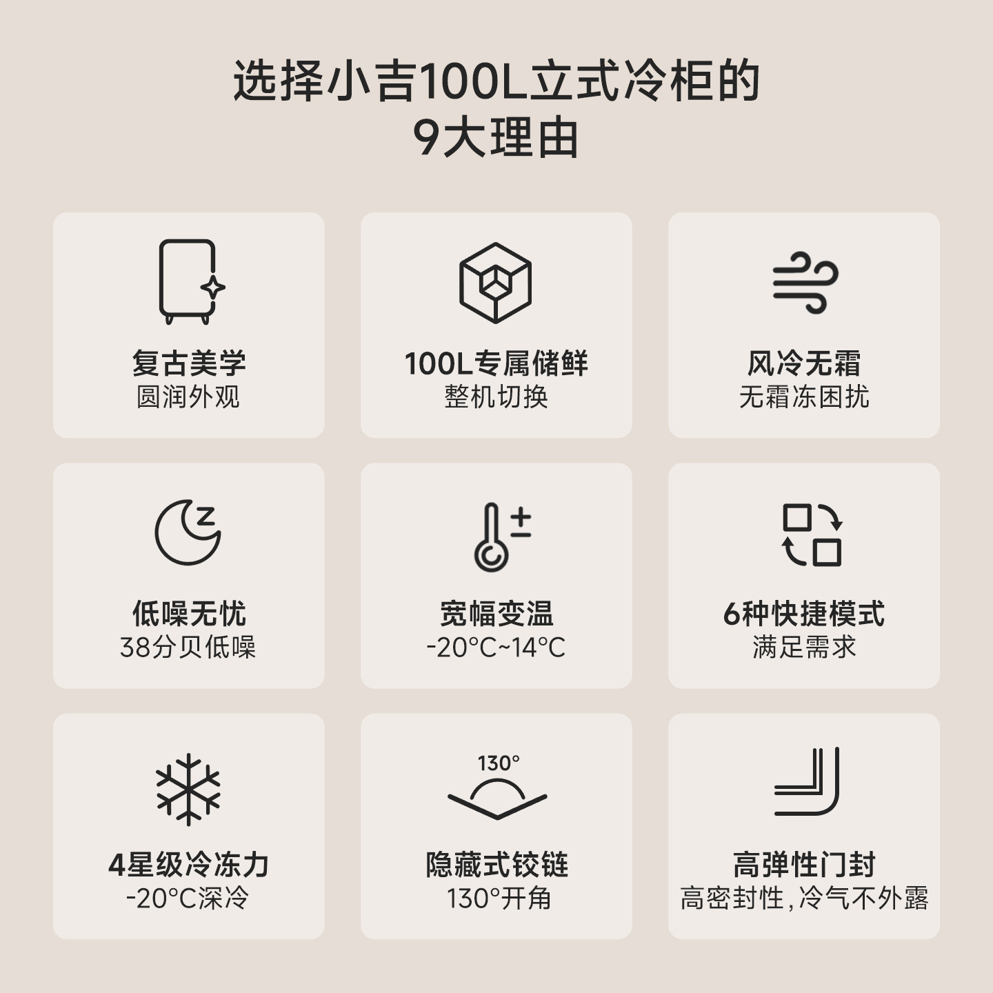 minij小吉100升单门风冷无霜小冰箱小型立式冷藏冷冻家用储鲜冷柜