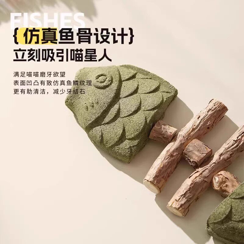 猫咪玩具鱼骨头木天蓼猫薄荷磨牙棒仿真鱼磨牙耐咬自嗨解闷逗猫棒