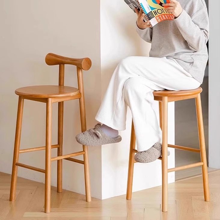 推荐理由:日式实木蝴蝶吧台椅家用民宿餐厅酒吧收银台岛台北欧高脚靠背凳子