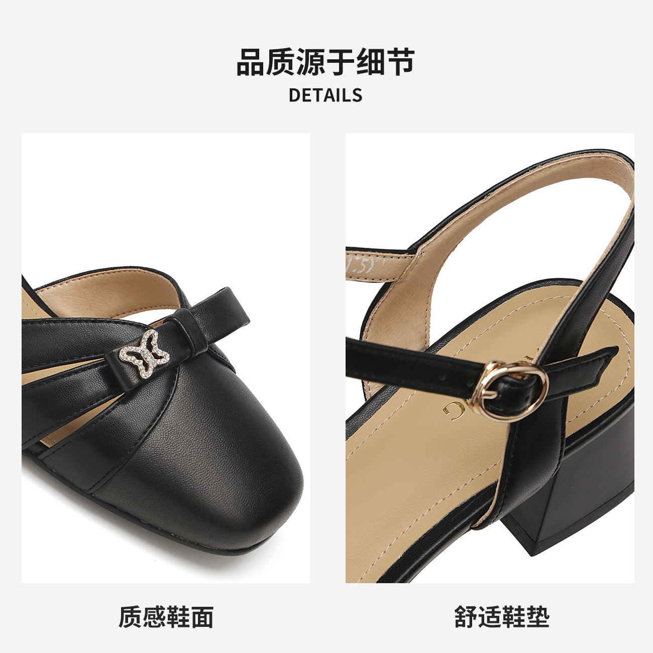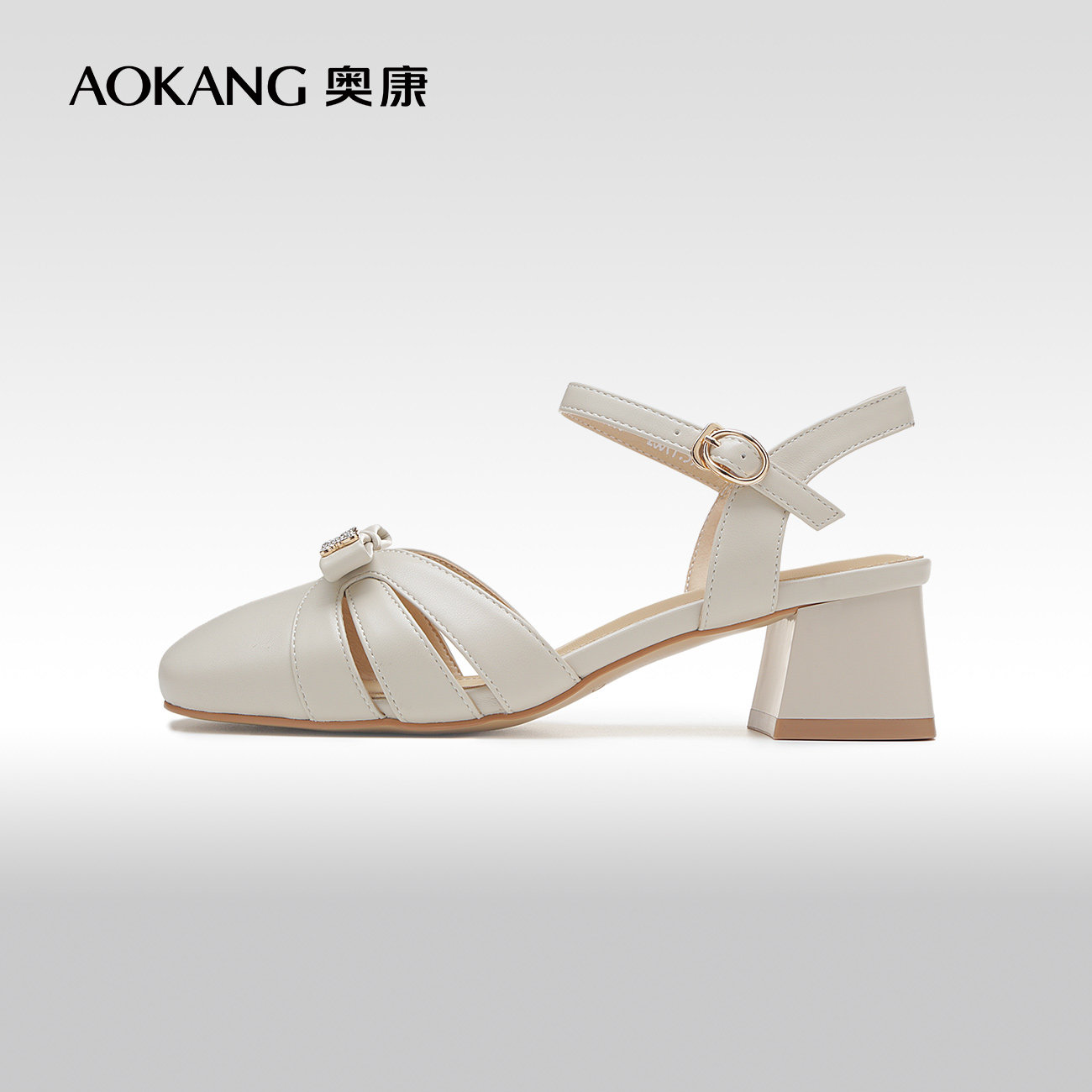推荐理由:奥康女鞋 夏季新款一字带蝴蝶结中空凉鞋简约百搭粗跟凉鞋