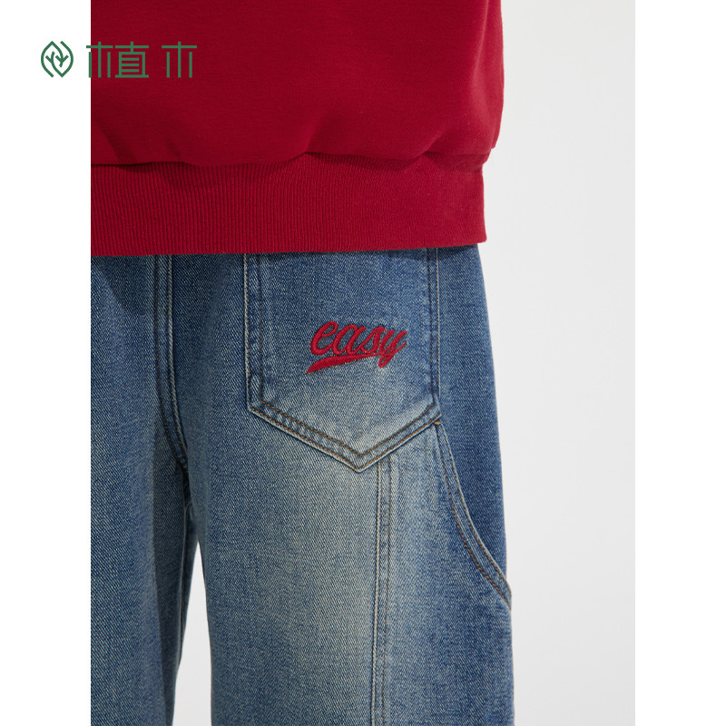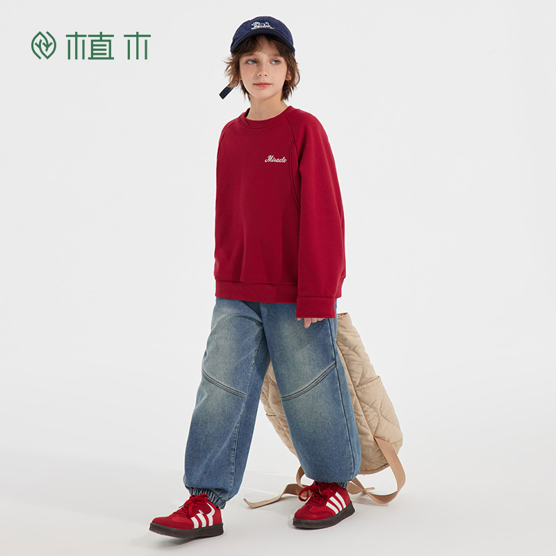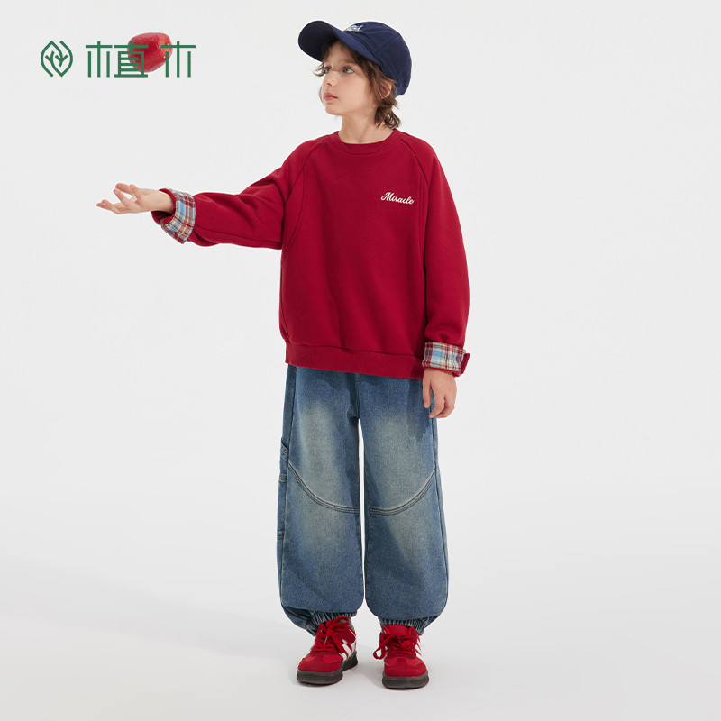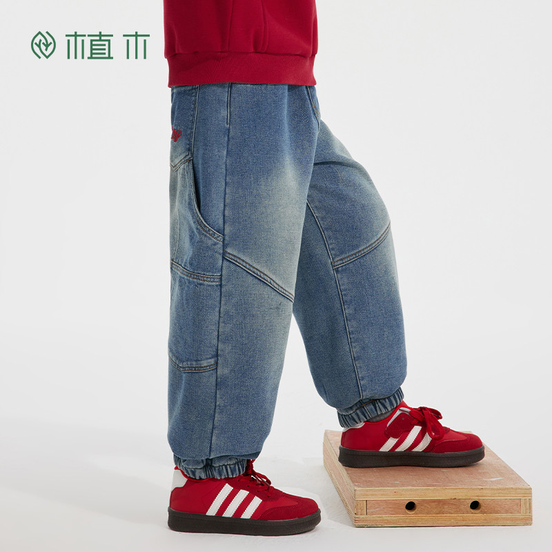 植木童装 儿童裤子2025秋冬新款中大童束脚加绒牛仔裤男童裤子