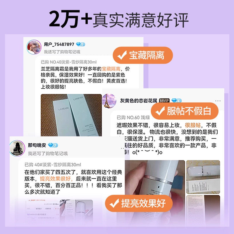 兰芝隔离霜防晒遮瑕三合一紫色打底雪纱妆前乳旗舰店官网官方正品
