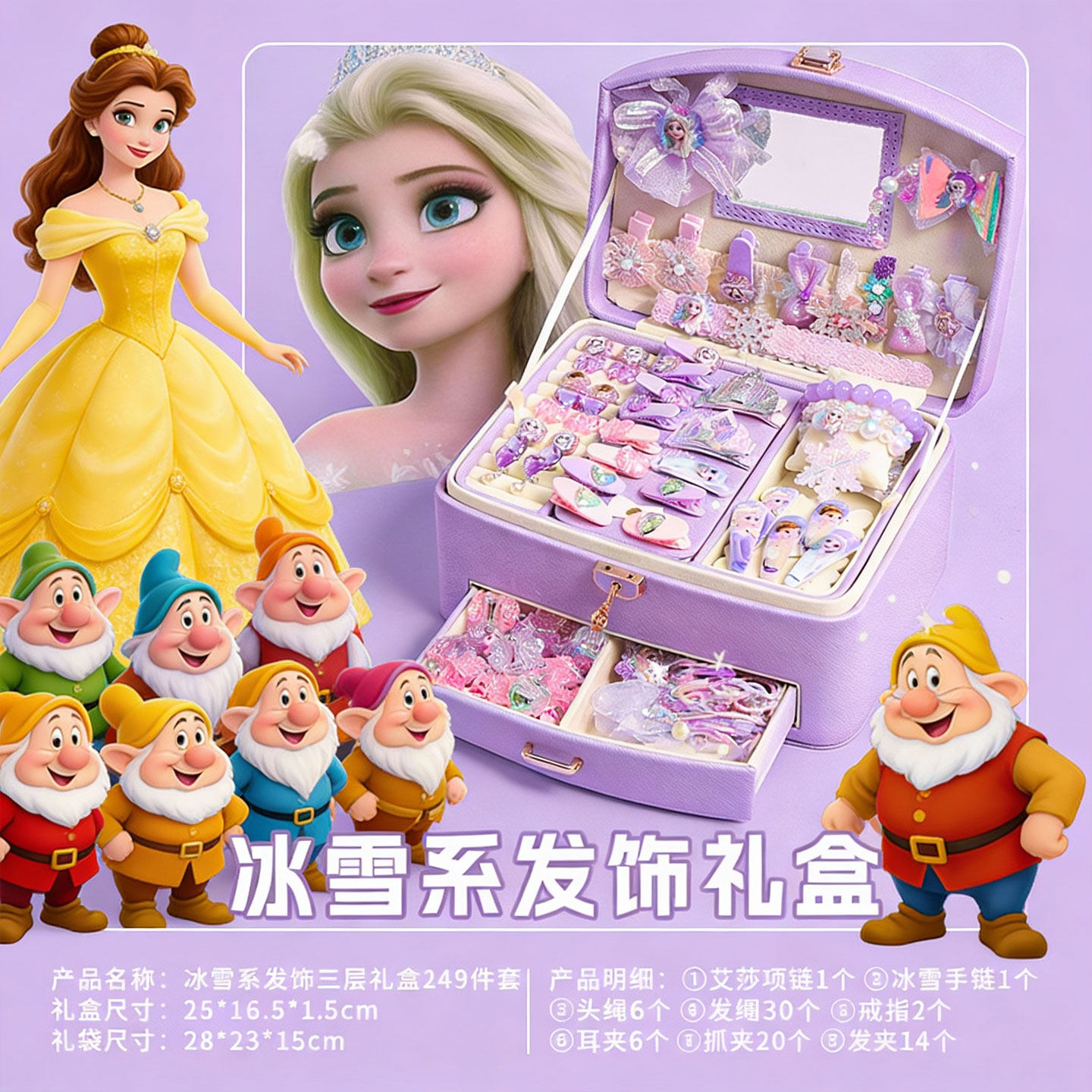 冰雪奇缘公主发饰儿童礼盒女孩生日礼物发夹皮筋头饰惊喜玩具套装