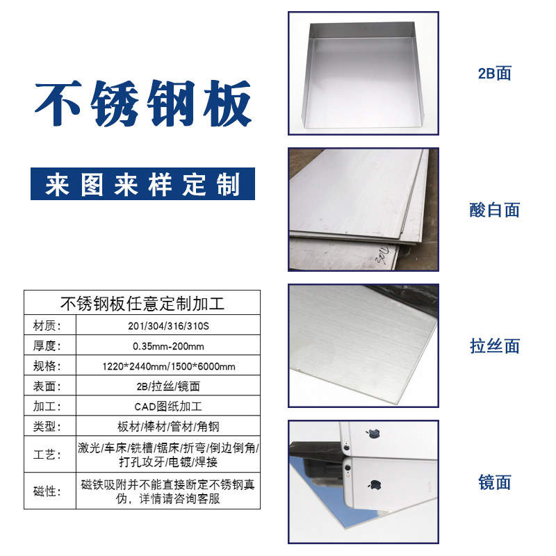 推荐理由:不锈钢板材加工定做 304拉丝板激光切割钣金折弯316L整板定制切零