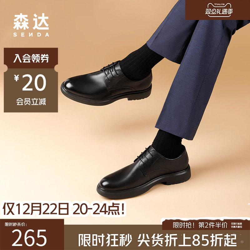 森达男鞋正装皮鞋布洛克雕花商务通勤德比鞋商场同款真皮增高婚鞋