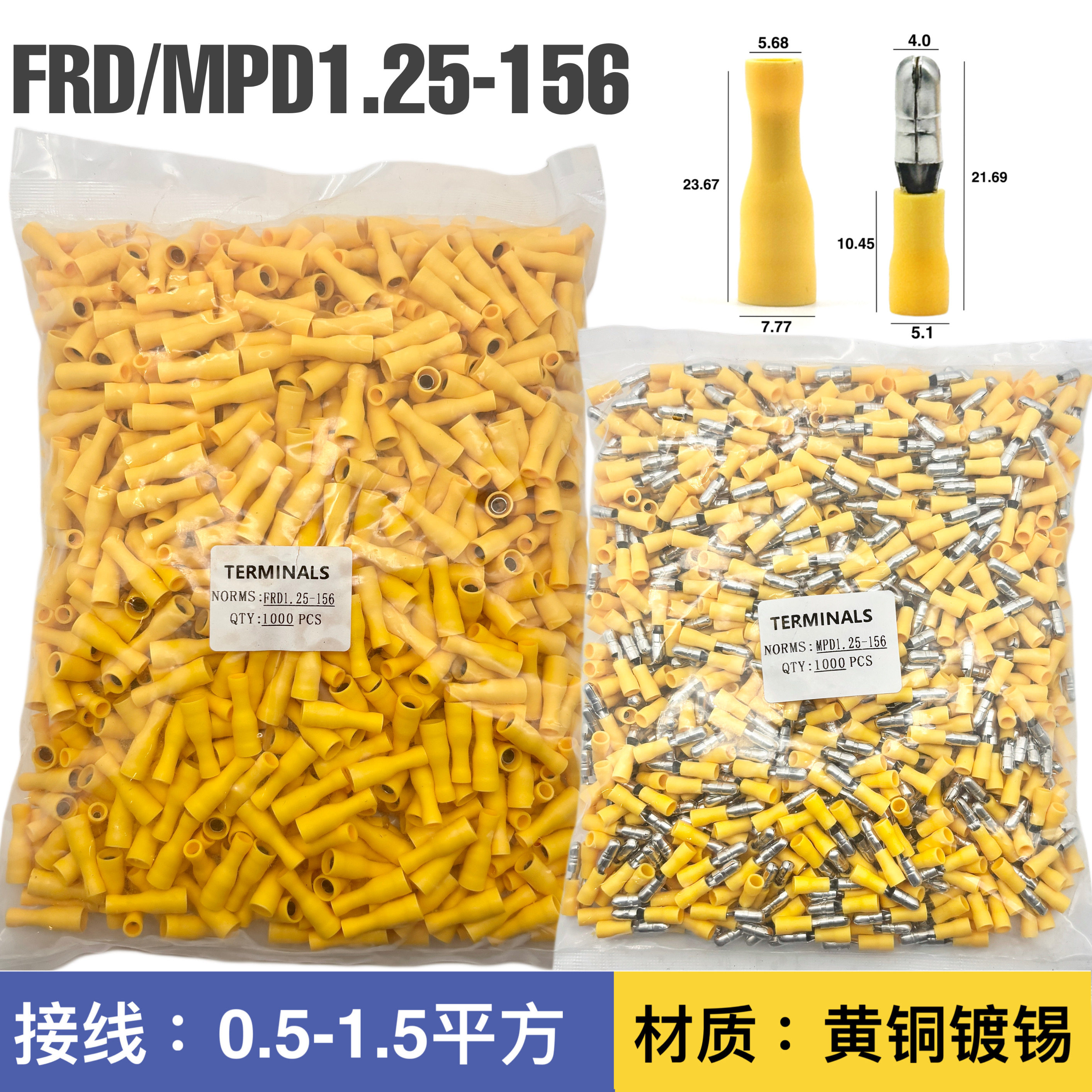 FRD/MPD1.25-156子弹头冷压公母电线插头对接绝缘连接器接线端子