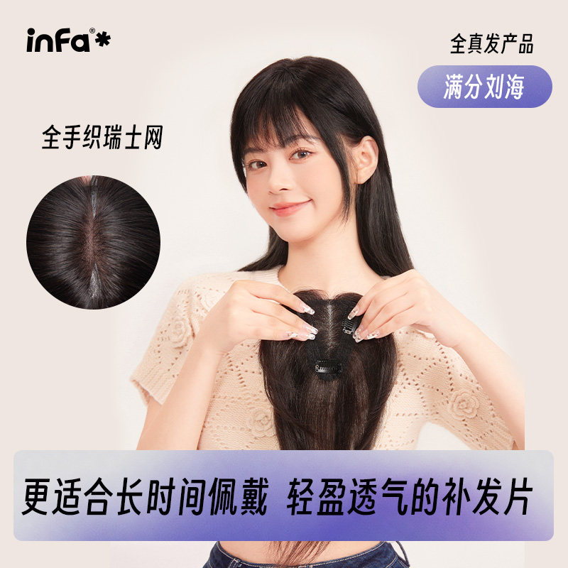 infa瑞士网夏天薄款法式八字刘海假发片蓬松头顶真发女补发遮白发