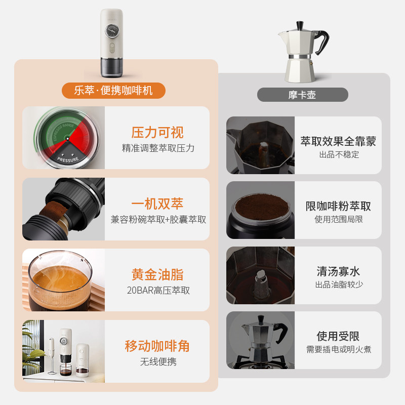 推荐理由:圆乐便携式咖啡机套装全自动意式浓缩胶囊咖啡机小型家用萃取机