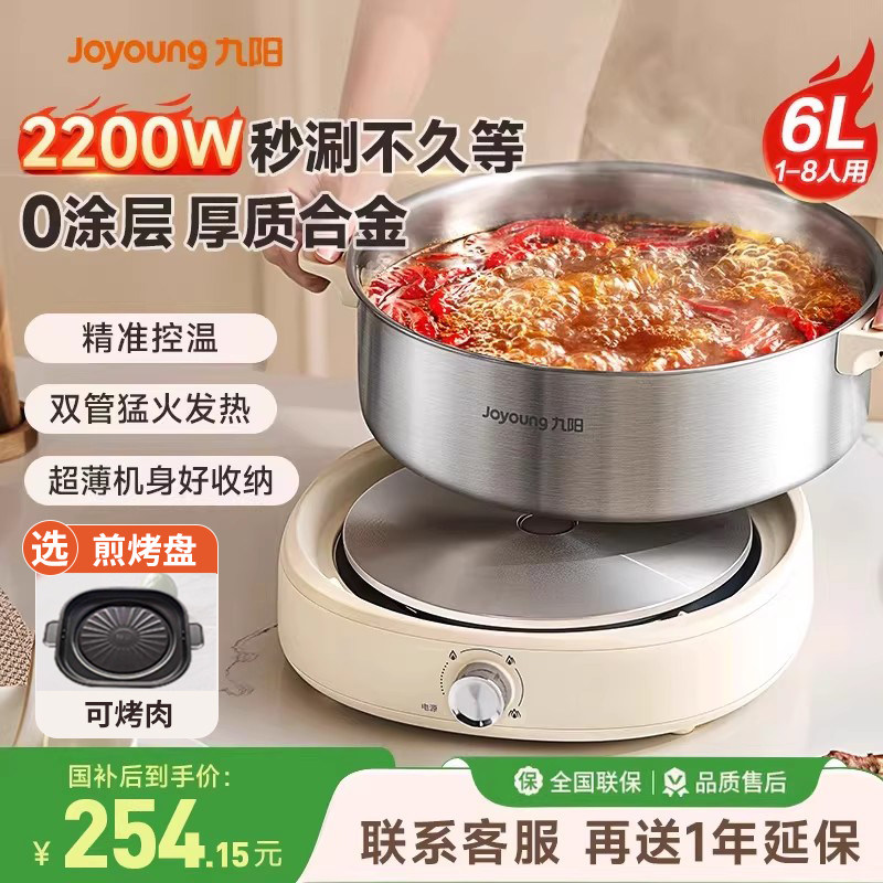 九阳电火锅0涂层家用6升大容量秒涮分体式电煮锅官方旗舰店正品新