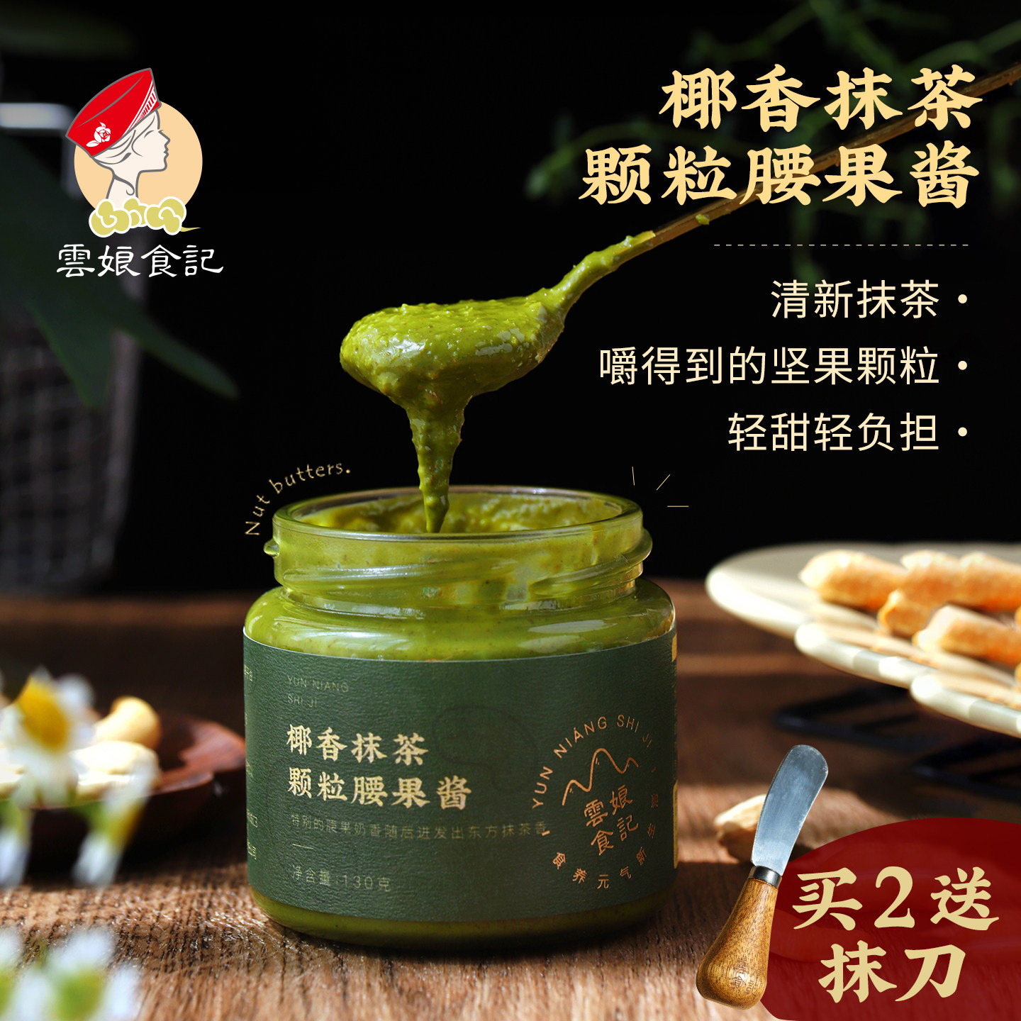 云娘食记 椰香抹茶颗粒腰果酱 高蛋白烘焙涂抹面包早餐沙拉坚果酱