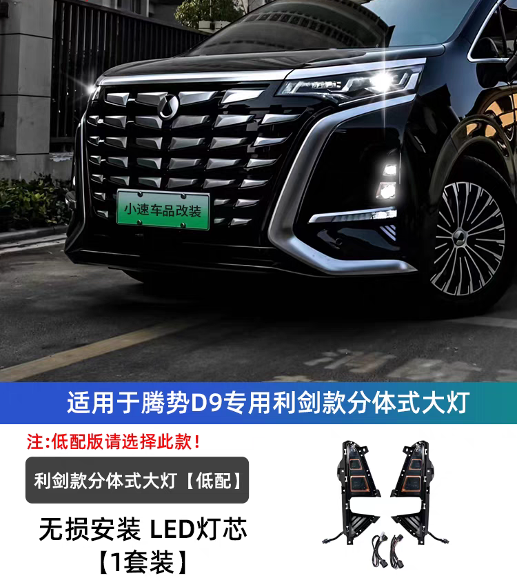 腾势D9分体大灯四透镜LED大灯升级改装前雾灯流水行车灯用品改装