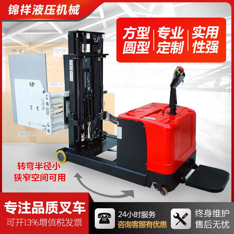 全电动无腿抱夹圆形方形360度旋转冰箱油桶纸包棉布卷夹抱机叉车