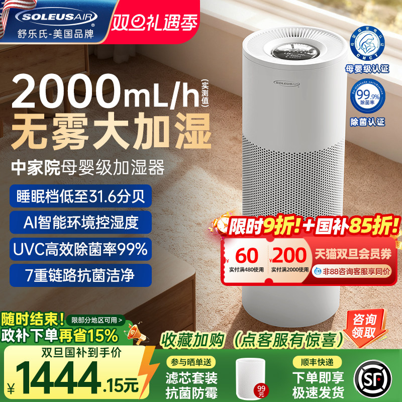 舒乐氏2025新款Noa无雾加湿器静音母婴家用卧室除菌大容量落地式