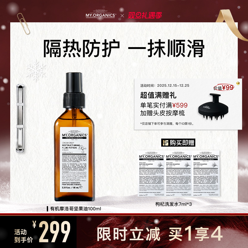 myorganics有机摩洛哥坚果油改善毛躁分叉隔热顺滑光泽滋养护发