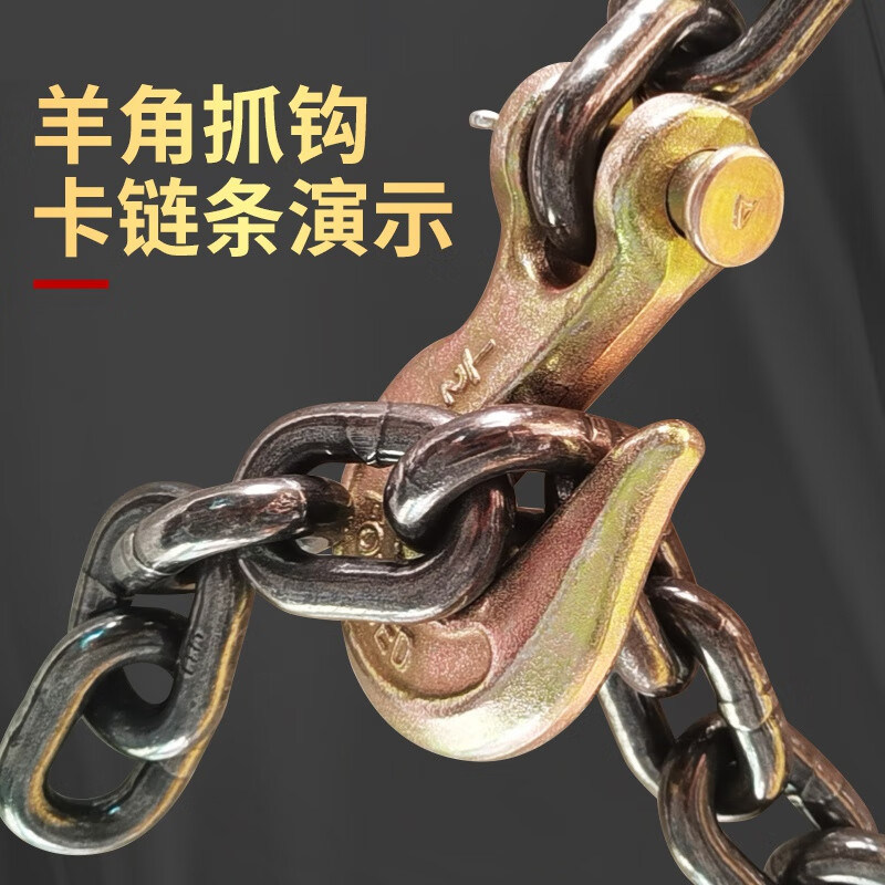 羊角双抓钩起重链条吊索具锰钢铁链叉车铁链吊钩吊石头捆绑铁链条