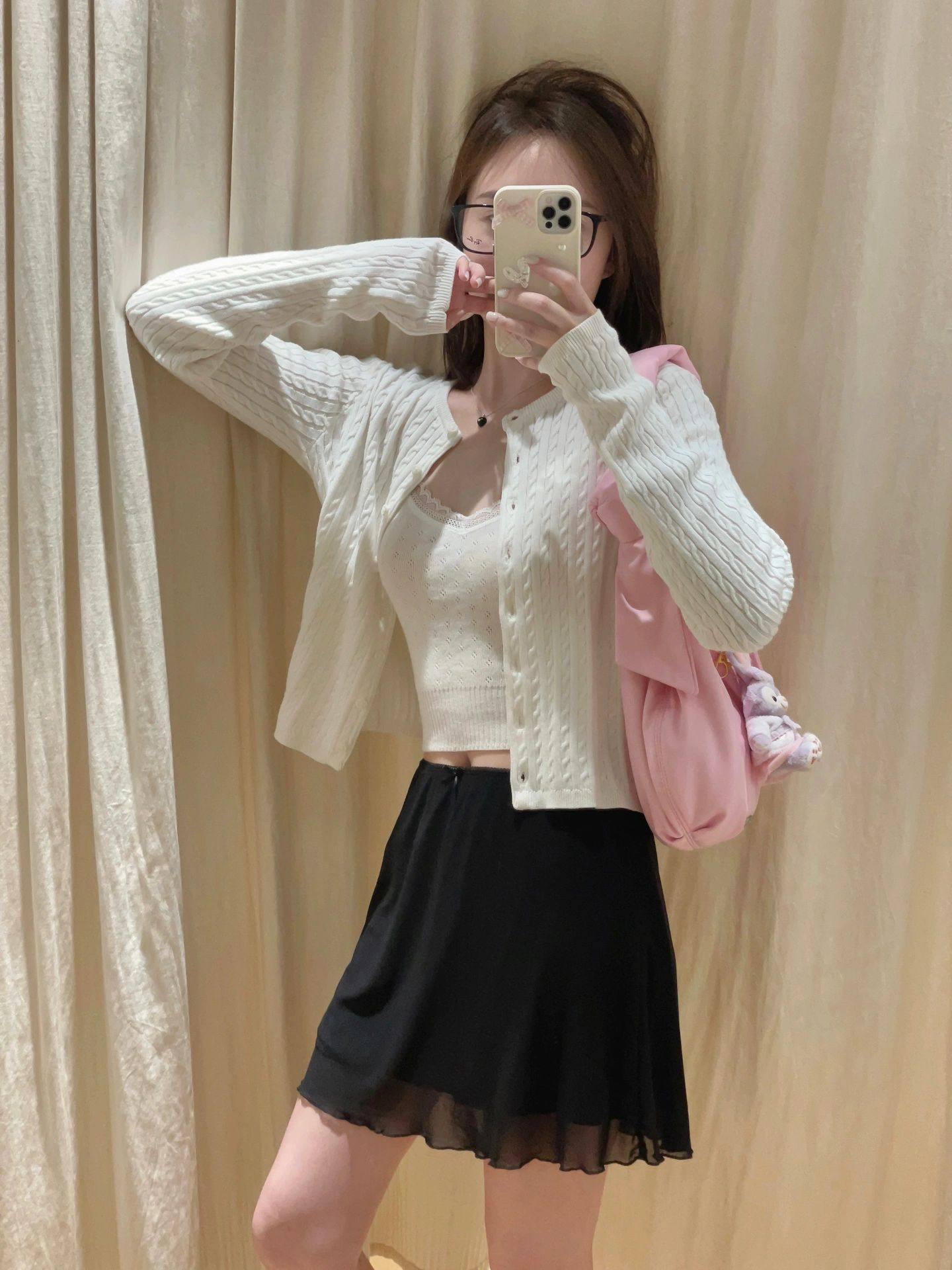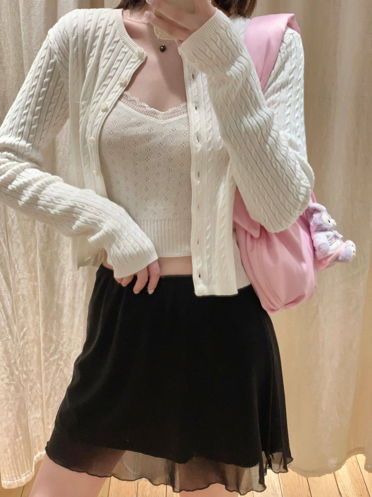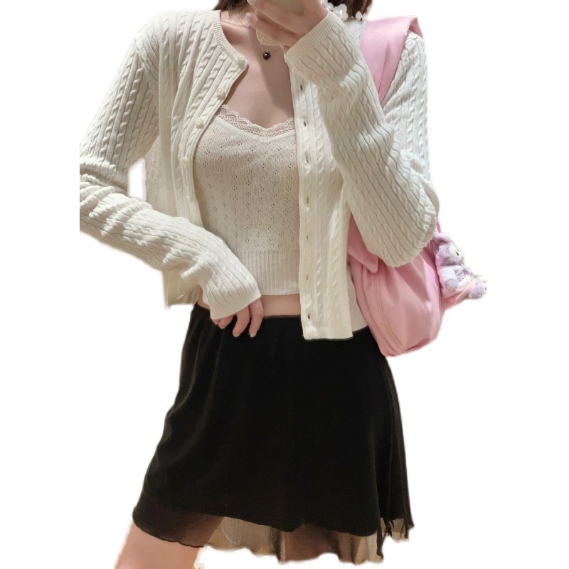 推荐理由:Brandy bm藏青复古短款排扣麻花针织开衫外套上衣女小众设计感