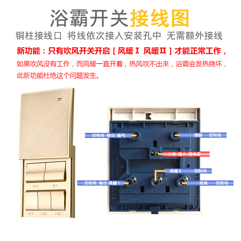 推荐理由:4开浴霸开关五开四开六开86型滑盖防水16A大功率5开浴霸专用开关