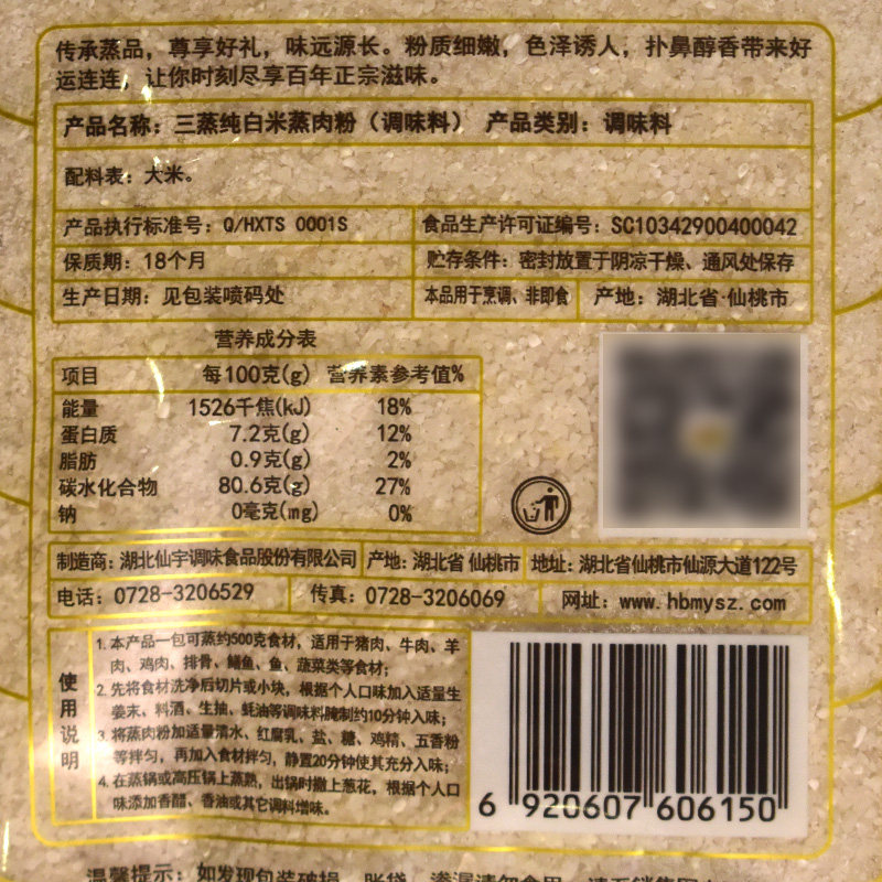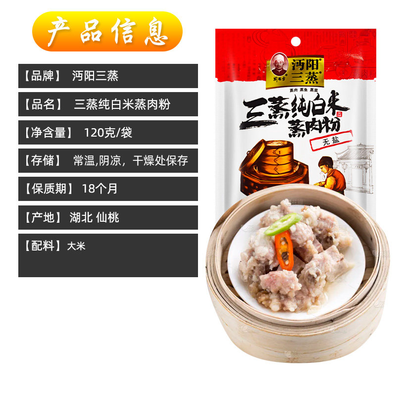 推荐理由:湖北特产沔阳三蒸纯白米无盐蒸肉粉120克/袋*5袋原色蒸肉粉