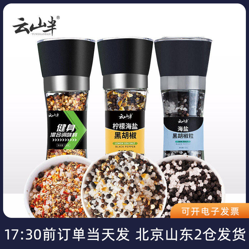 云山半海盐黑胡椒180g 自带研磨器粒碎鸡胸牛排专用混合调味料瓶
