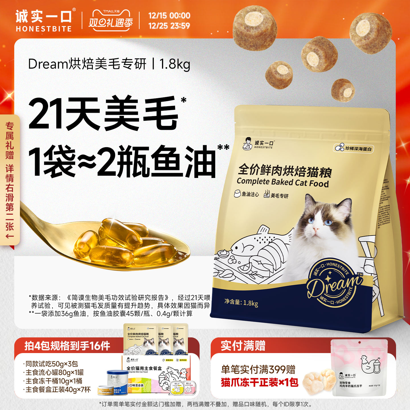 诚实一口美毛鲜肉烘焙成猫粮低温注心冻干亮毛鸡肉鱼油奇迹小金袋