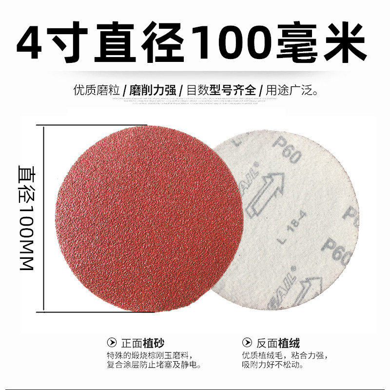 植绒砂纸片4寸5寸7寸9寸打磨机圆形拉绒片N抛光打磨自粘圆盘砂纸