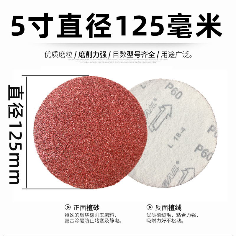 推荐理由:植绒砂纸片4寸5寸7寸9寸打磨机圆形拉绒片N抛光打磨自粘圆盘砂纸