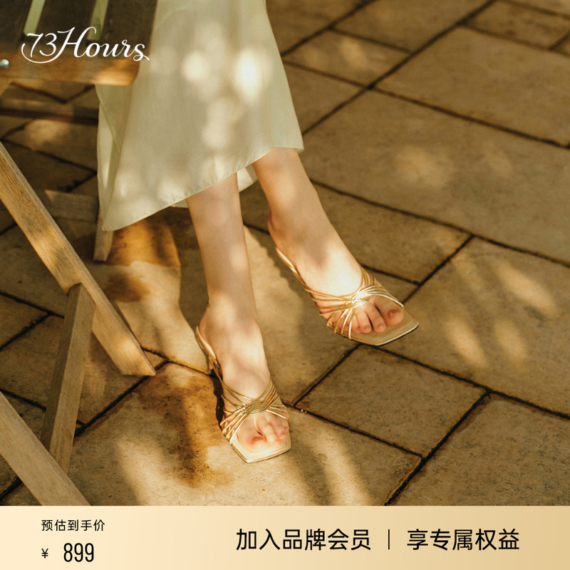 73hours女鞋马德里漫步2025夏法式高跟鞋凉鞋金色拖鞋女外穿凉拖