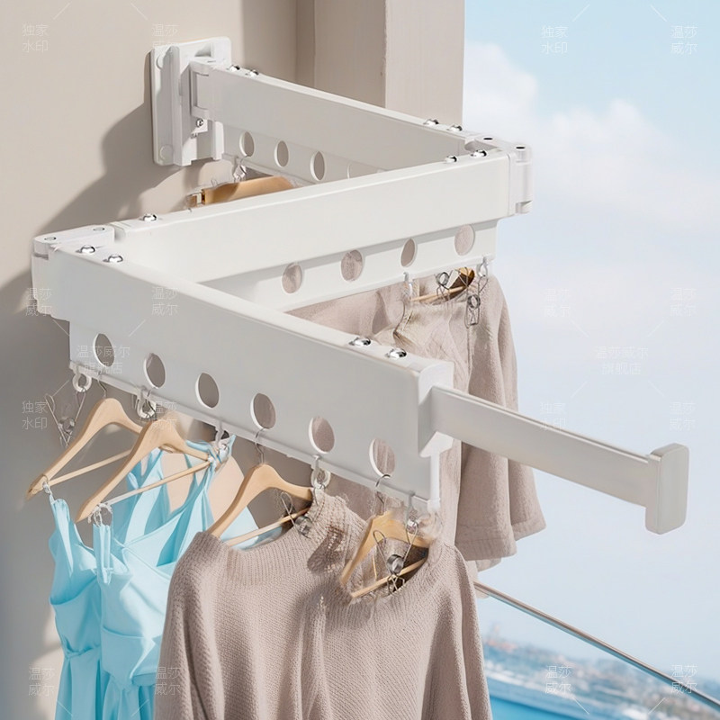 阳台家用可折叠晾衣架隐形伸缩免打孔侧装壁挂晾衣杆晾晒架晒被子