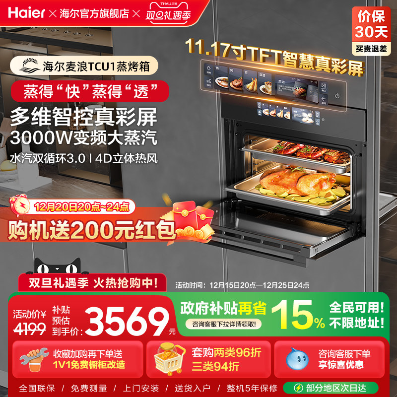 海尔麦浪蒸烤箱瞬蒸C50蒸烤一体机嵌入式家用蒸箱【3000W大蒸汽】