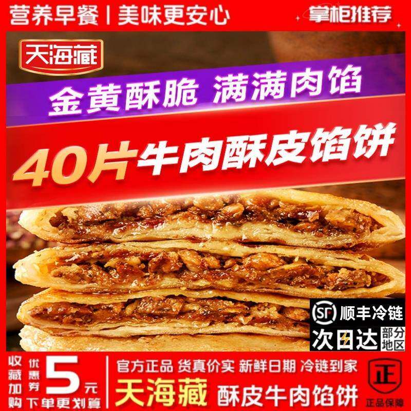【顺丰冷链】天海藏酥皮牛肉馅饼500g*8袋共40片金黄酥脆方便速食