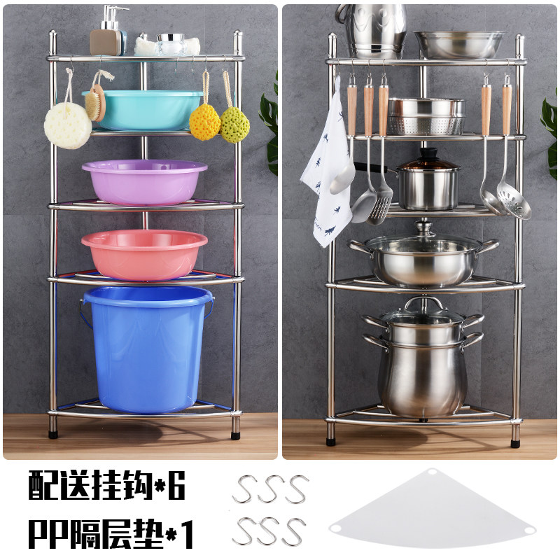 推荐理由:不锈钢洗脸盆架子多层三角架厨房卫生间墙角落地转角置物架面盆架