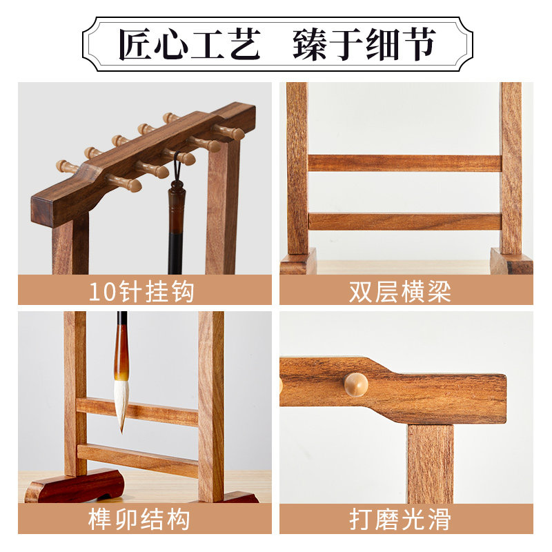 六品堂花梨木笔架毛笔挂书法专用文房四宝初学实木10针小笔架新中式初学者书画用品摆件毛笔挂架毛笔架子
