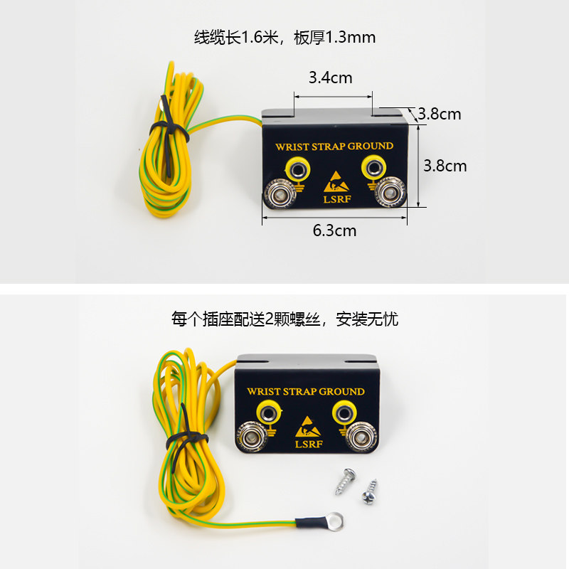 防静电台垫L型接地线2/4孔插座胶皮垫接地扣有线手腕带连接线配件