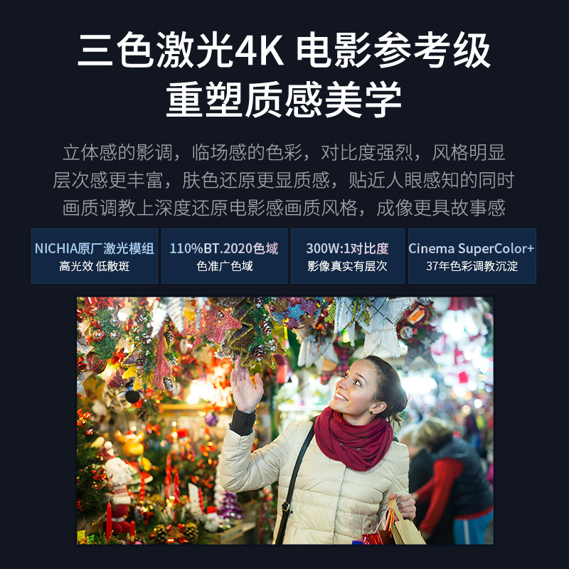 推荐理由:0.65"DMD大芯片 4K三色激光 3年质保