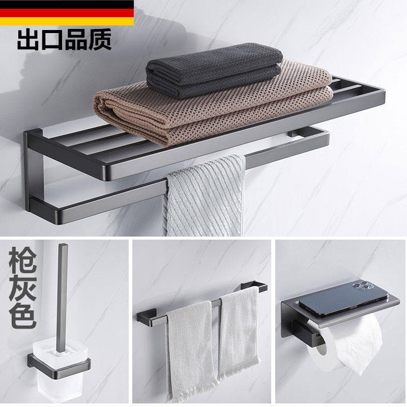 德国304不锈钢枪灰色毛巾架卫生间浴巾架浴室置物架五金挂件