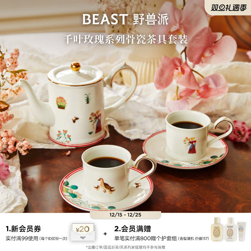 【圣诞礼物】野兽派野兽的花骨瓷茶具茶杯茶壶套装礼盒生日下午茶