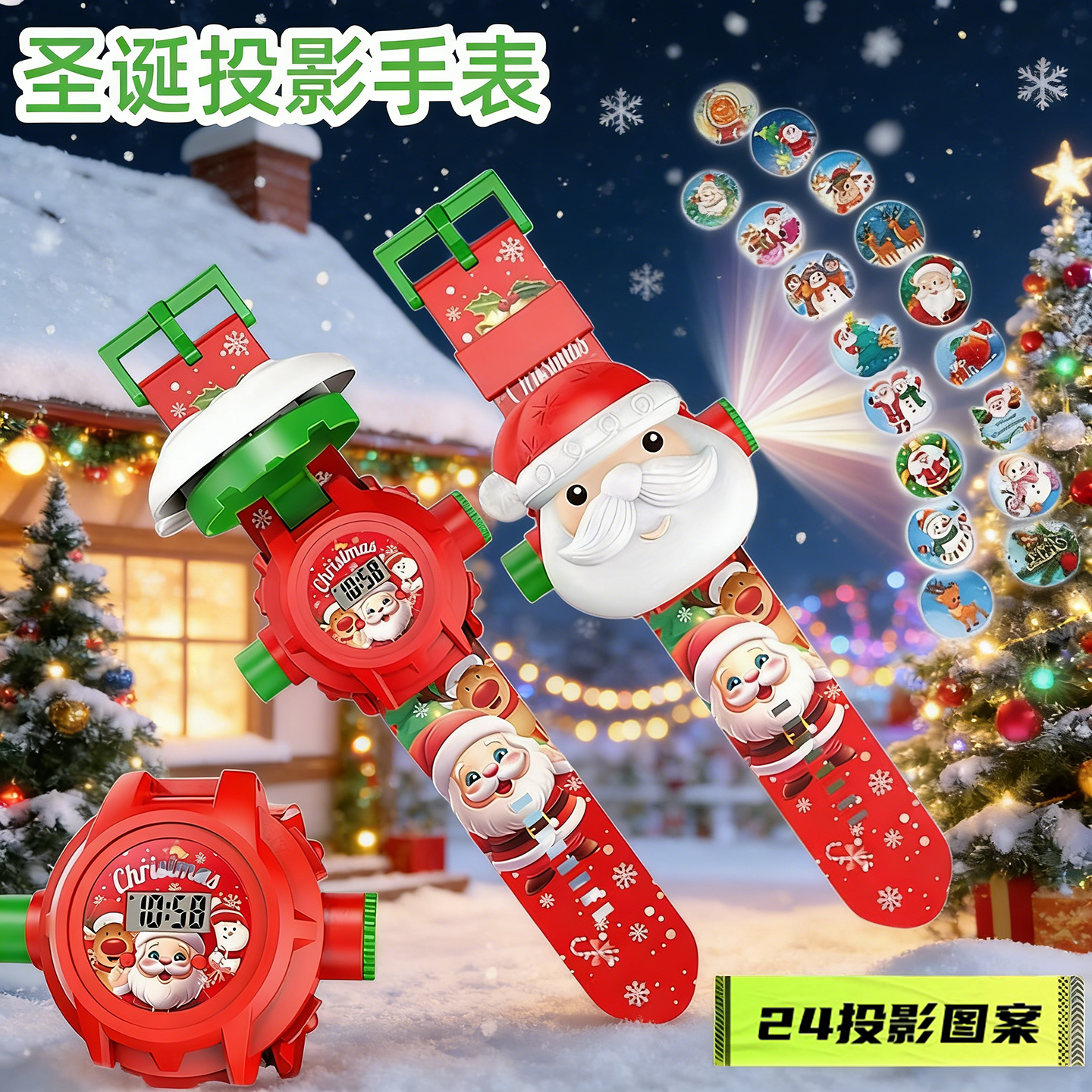 推荐理由:新款圣诞卡通翻盖投影手表儿童发光玩具男女孩圣诞节装饰小礼物