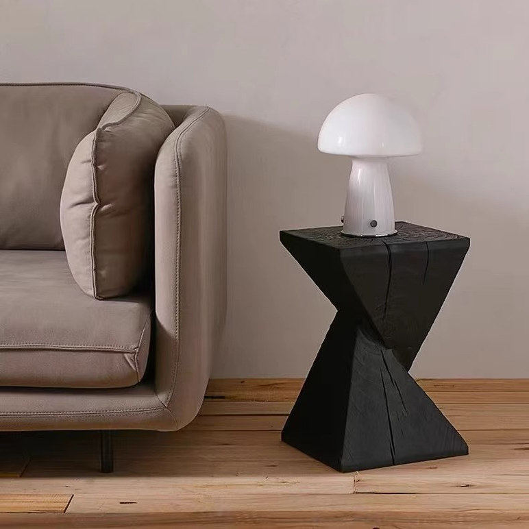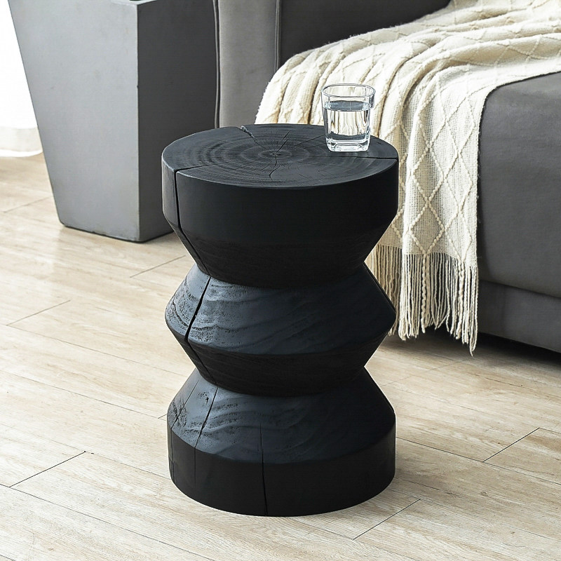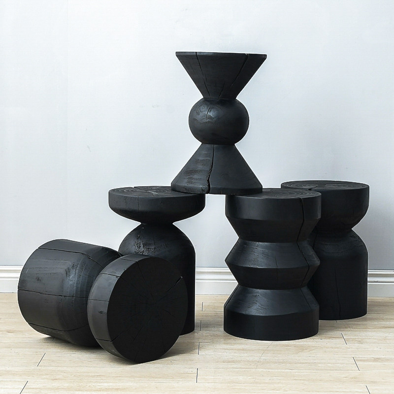 碳化实木墩子黑色边角几民宿床头柜摆件花架树桩原木凳子根雕茶几