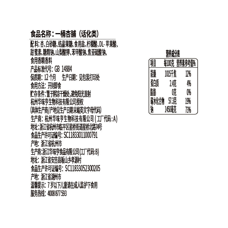 华味亨一桶杏干蜜饯果干果脯开胃解馋休闲零食小吃办公室