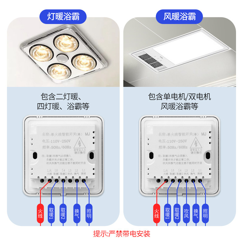 推荐理由:智能浴霸开关五开四开家用通用触摸屏三开六开合一单火洗澡免面板