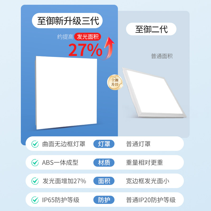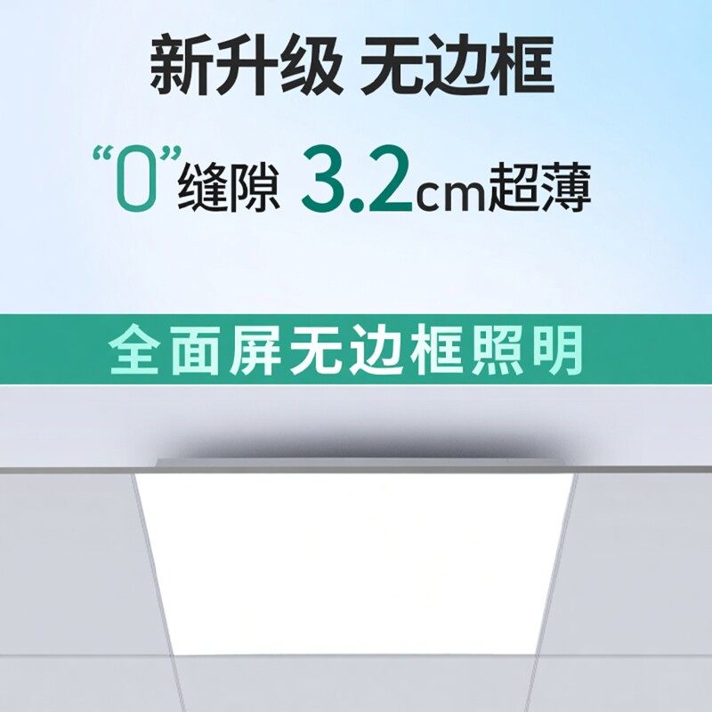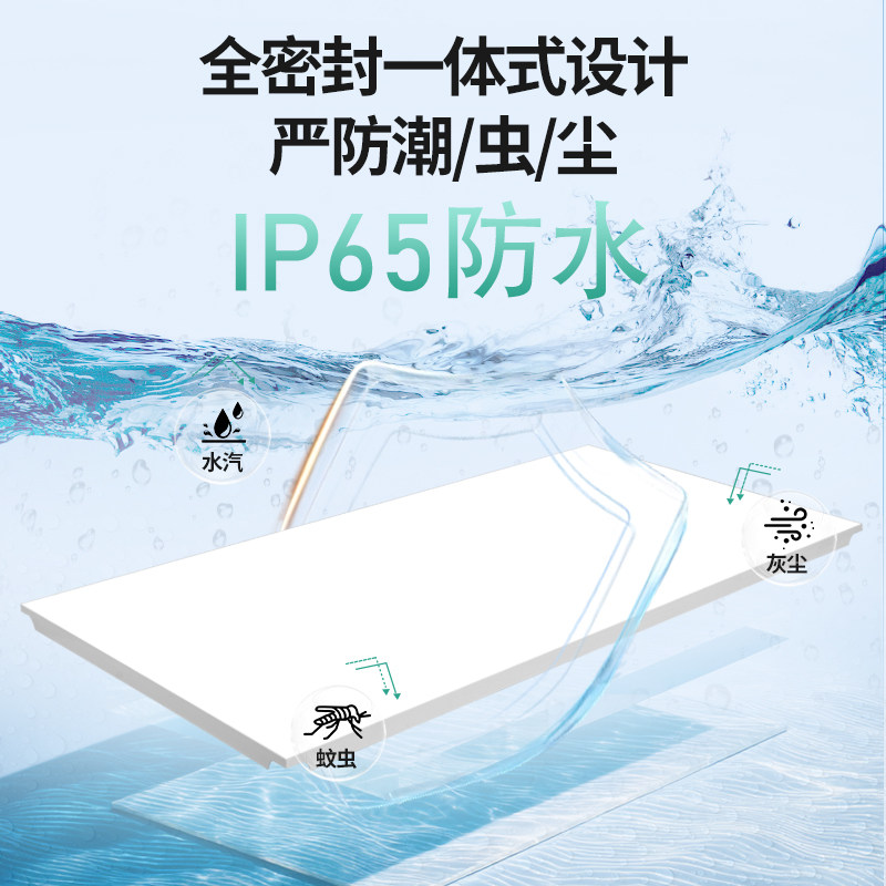 推荐理由:至御无边框平板灯LED面板灯IP65防水厨房卫生间方形铝扣板吸顶灯