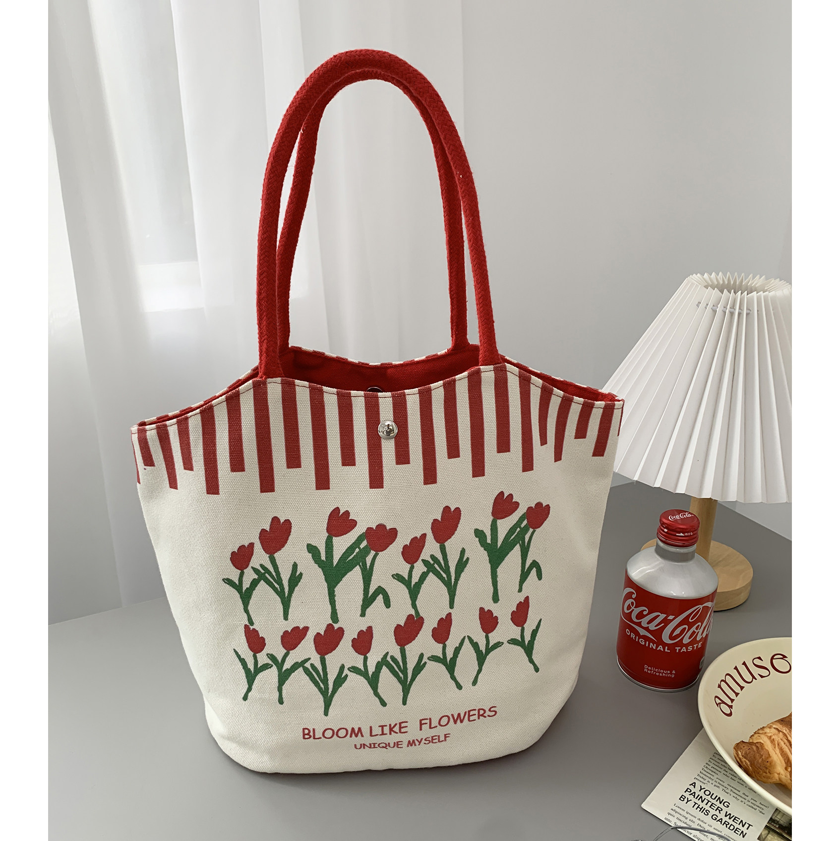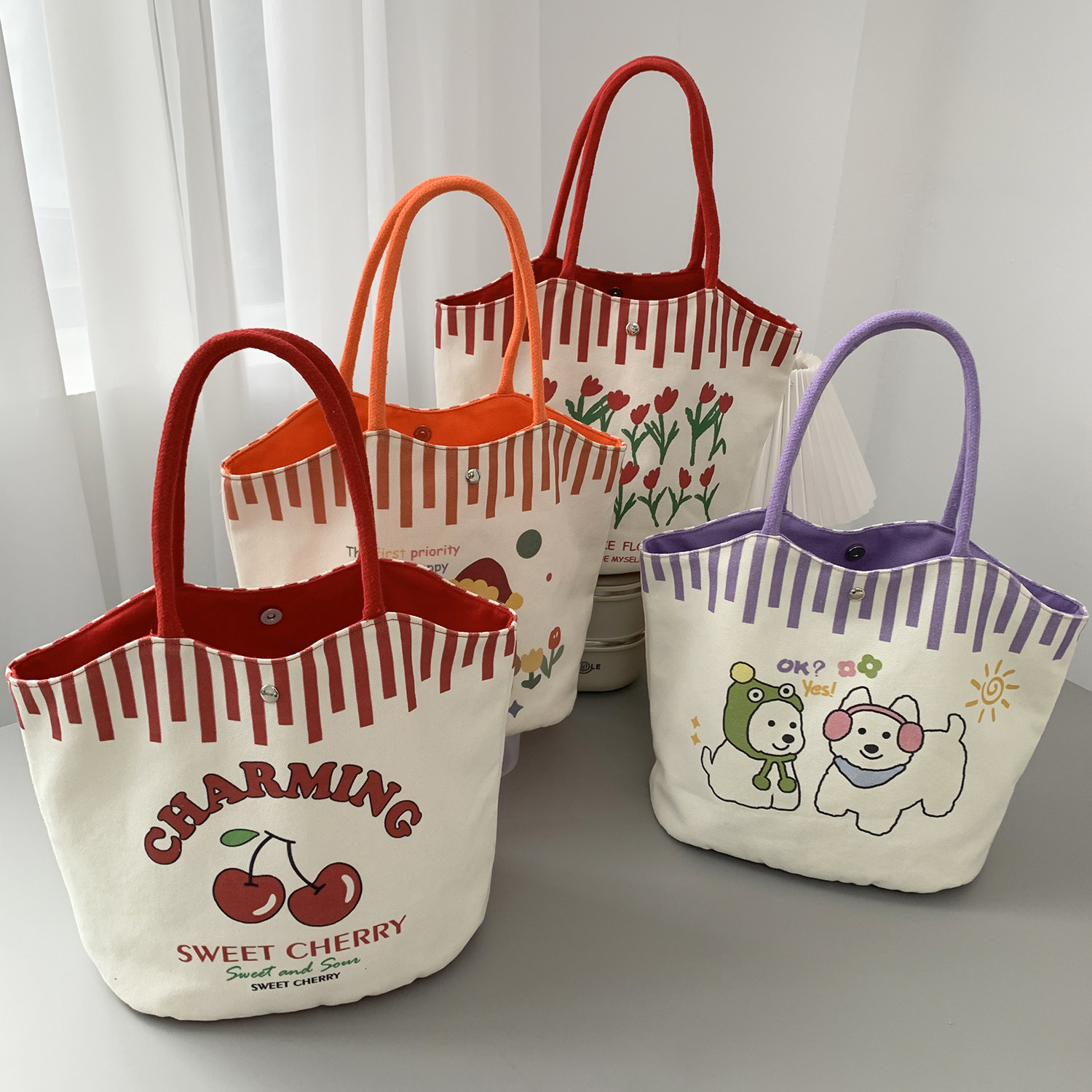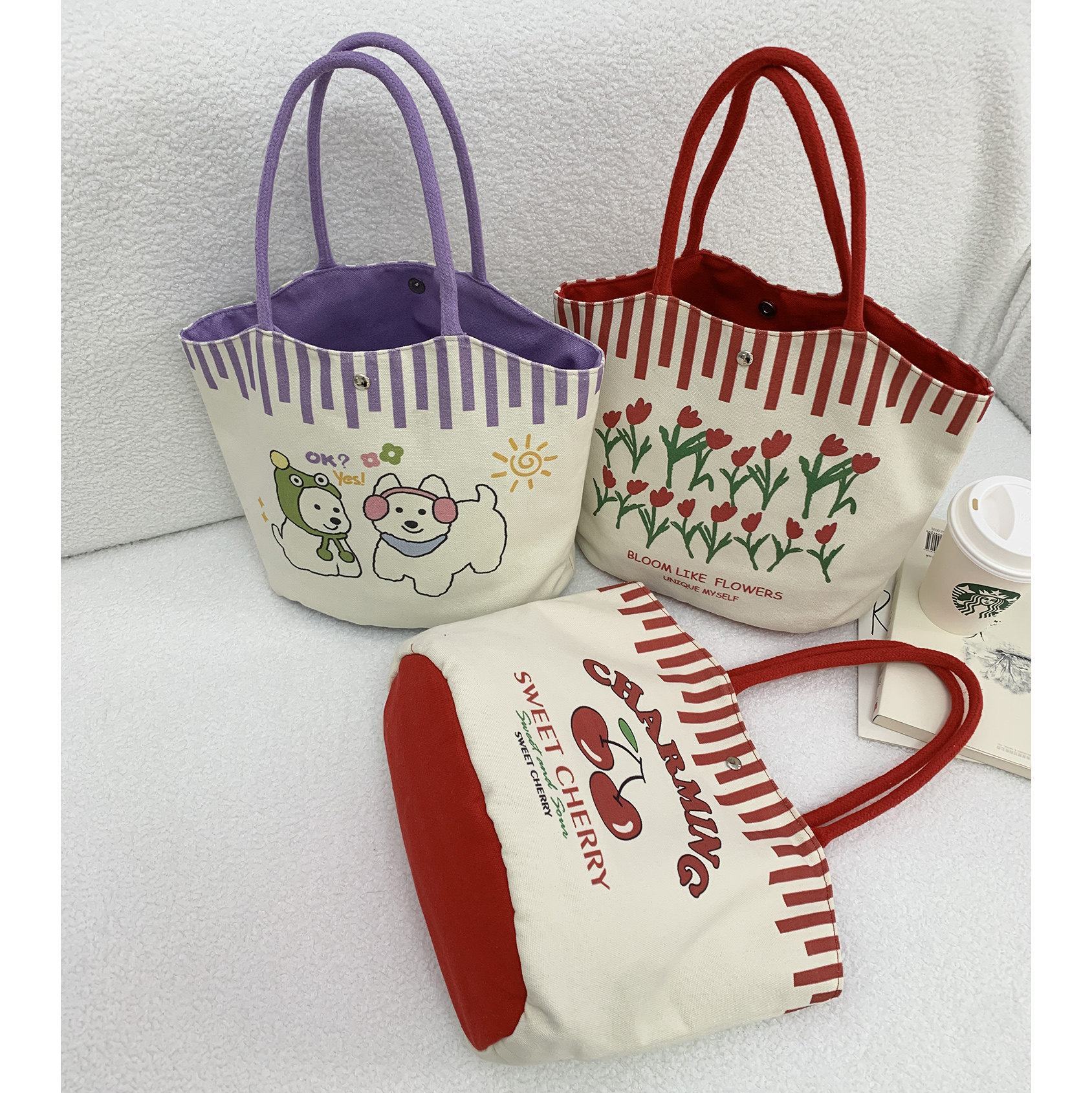2025新款韩系可爱手提小拎包出门杂物袋通勤上班饭盒水桶包帆布包